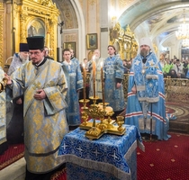 В Богоявленском кафедральном соборе хранится особо чтимый список Казанской иконы Божией Матери, созданный в XVII веке и находившийся прежде в Казанском соборе на Красной площади до его закрытия в 1930 году. По традиции перед полиелеем, во время пения тропаря, чтимый образ был перенесен с престола на аналой в центре храма, где святыне поклонились многочисленные верующие.