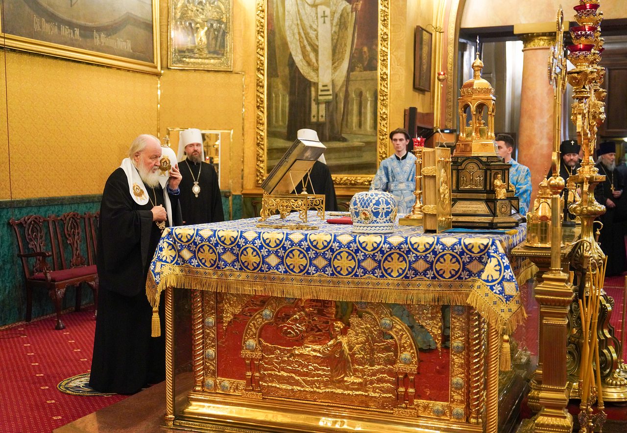 3 ноября 2025 года, в канун празднования Казанской иконе Божией Матери (в память избавления Москвы и России от поляков в 1612 году), Святейший Патриарх Московский и всея Руси Кирилл совершил всенощное бдение в Богоявленском кафедральном соборе в Елохове г. Москвы.