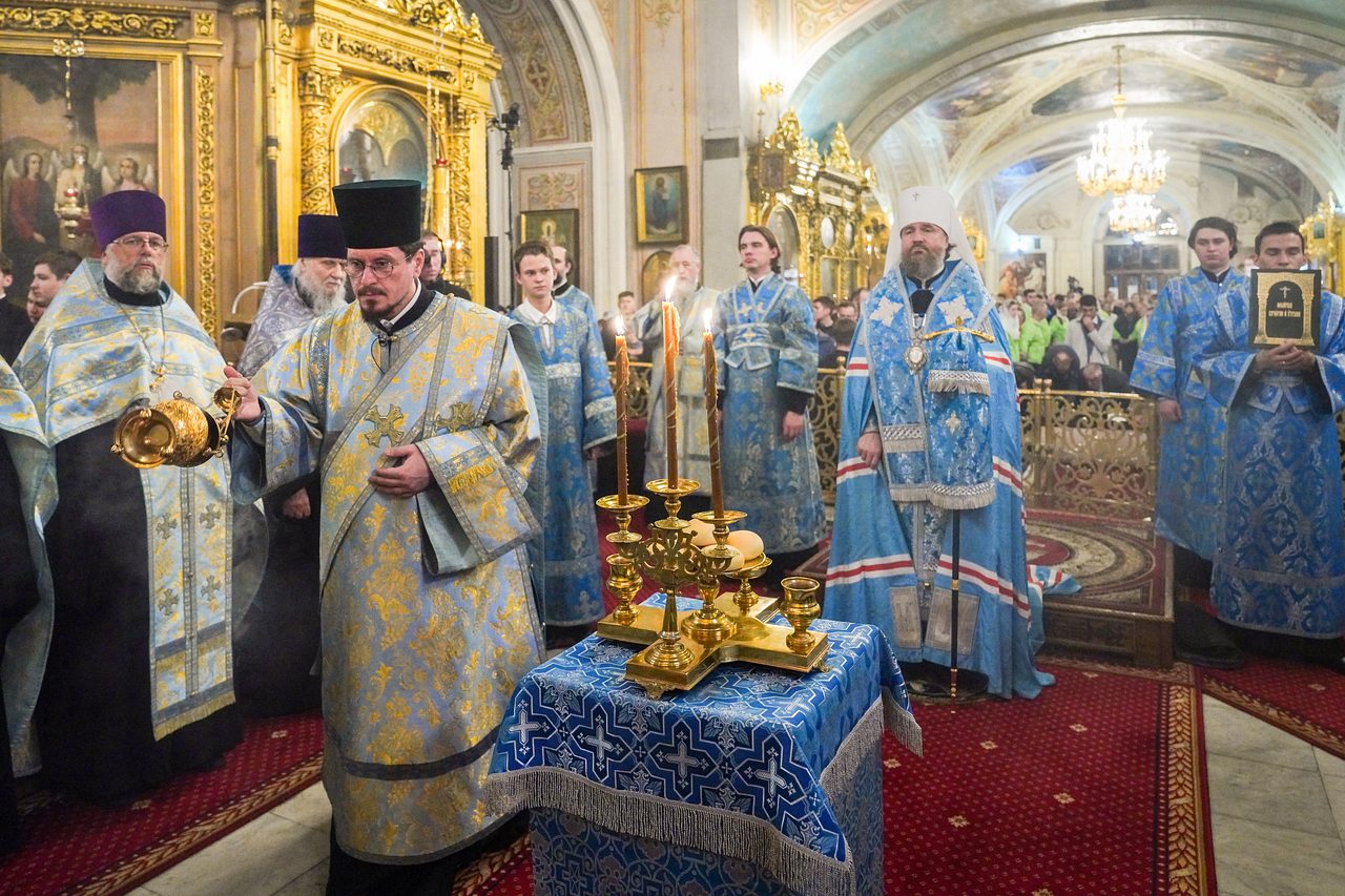 Песнопения всенощного бдения исполнили хор Богоявленского собора в Елохове (регент — А.К. Майоров) и сводный хор хоровой школы мальчиков «Богоявление» и воскресной школы при Богоявленском соборе в Елохове под управлением Е.М. Сидорычевой.