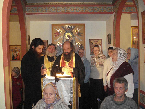 На праздник Крещения Господня бывает Великое освящение воды в помещении столовой, священники обходят все этажи и окропляют комнаты проживающих.