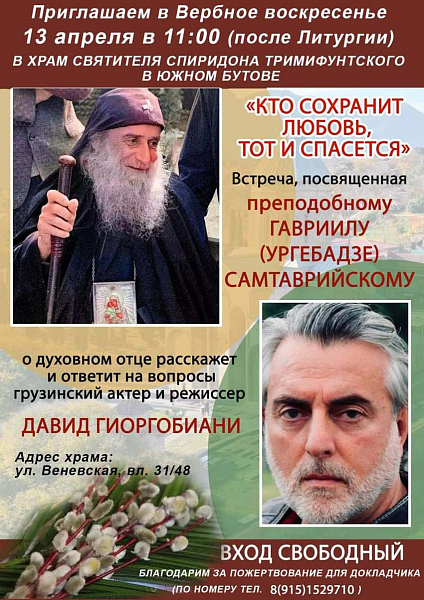 Приглашаем на встречу посвященную преподобному Гавриилу (Угербадзе) Самтаврийскому