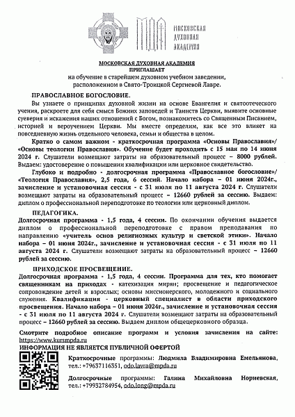 О реализации образовательных программ Отдела дополнительного образования Московской Духовной Академии с 6 июня по 3 июля 2023 г.