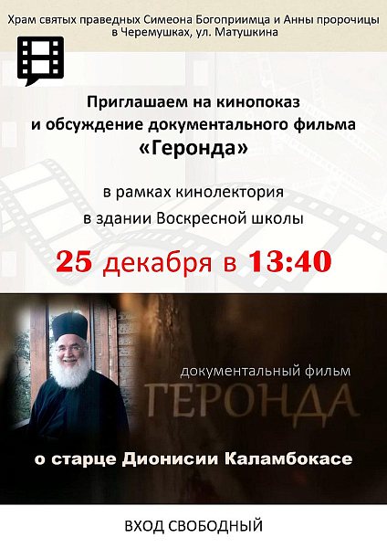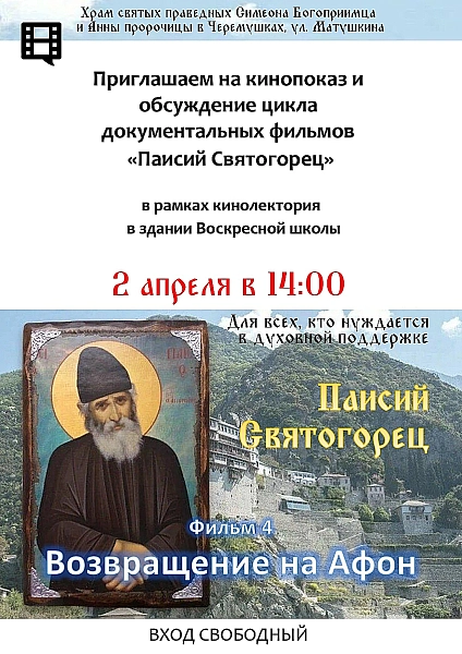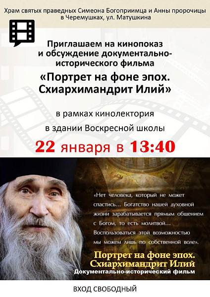 Кинопоказ и обсуждение документально-исторического фильма "Портрет на фоне эпох. Схиархимандрит Илий"