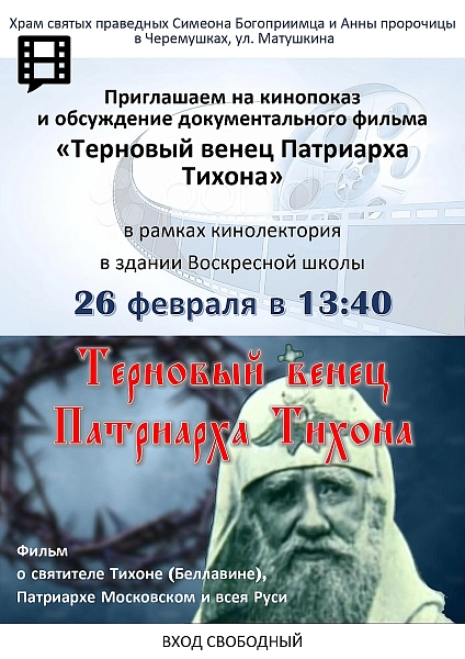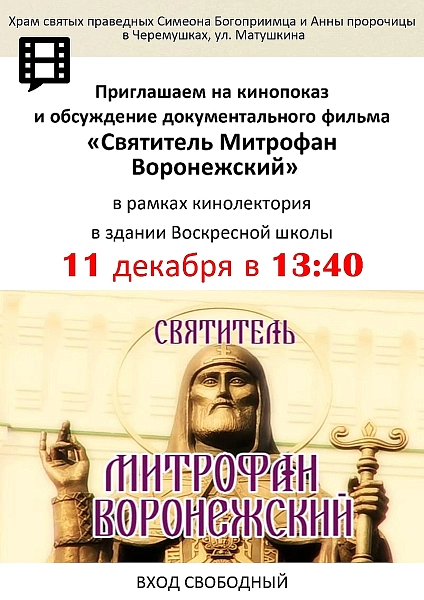 Кинопоказ и обсуждение документального фильма "Святитель Митрофан Воронежский"