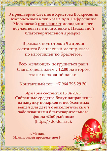 Пасхальная благотворительная ярмарка в храме преподобной Ефросинии