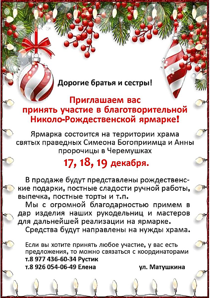 Предрождественская благотворительная ярмарка на приходе храма преподобного Моисея Мурина