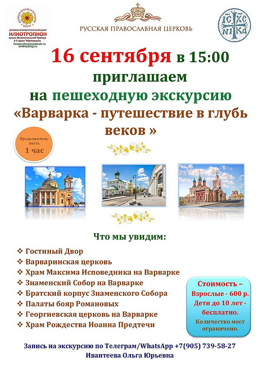 Приглашаем вас 16 сентября на экскурсию "Варварка - путешествие в глубь веков".