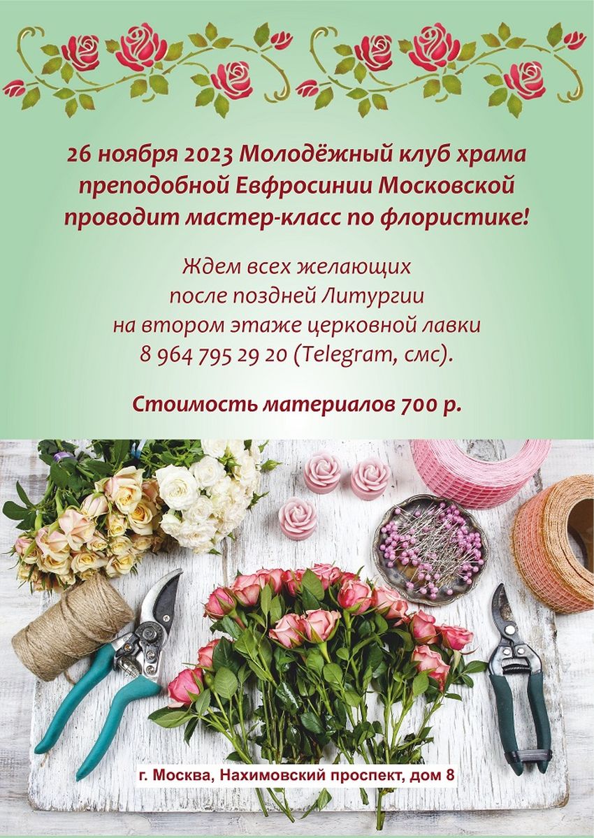 26 ноября молодежный клуб храма Евфросинии Московской проводит мастер-класс по флористике.