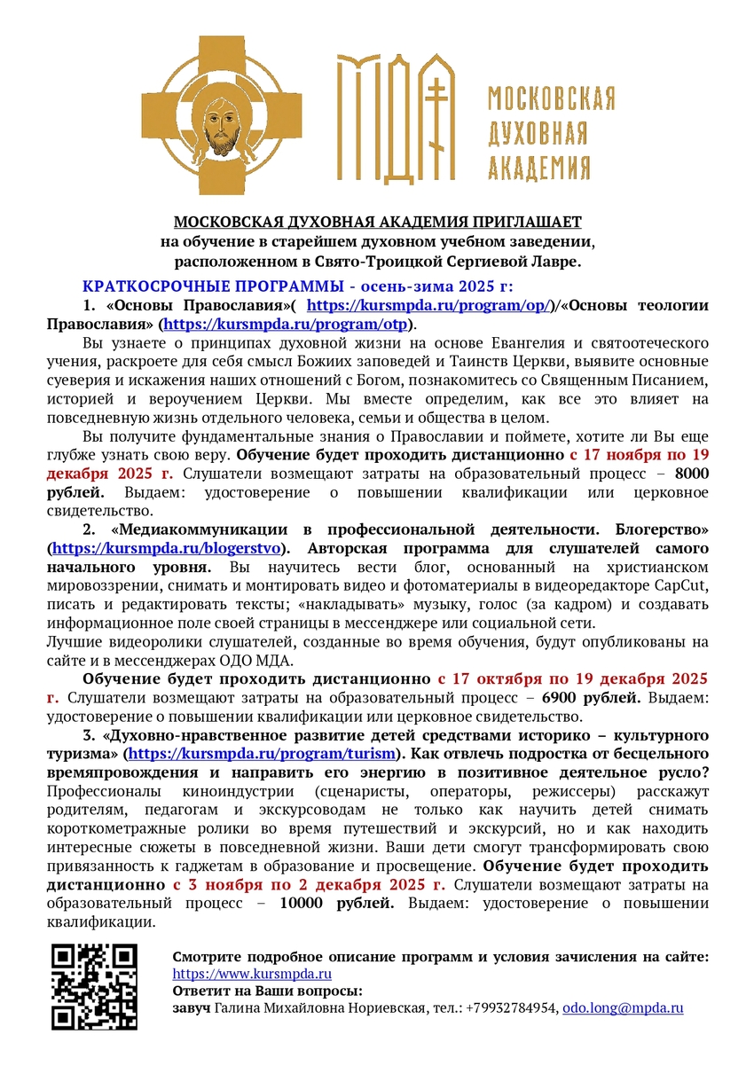 Московская Духовная Академия приглашает на обучение в старейшем духовном учебном заведении, расположенном в Свято-Троицкой Сергиевой Лавре.