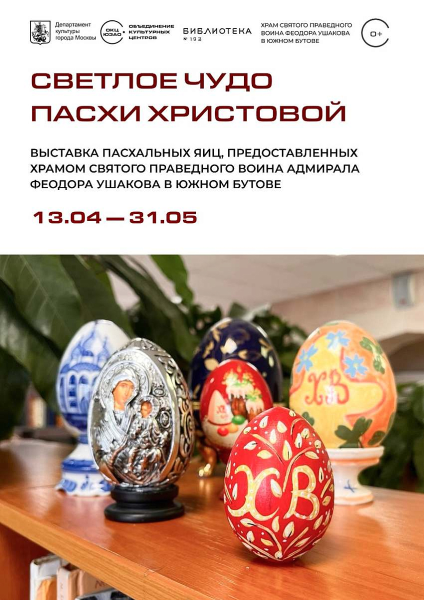 С 12 апреля по 31 мая приглашаем всех на выставку пасхальных яиц в храм Святого праведного воина адмирала Федора Ушакова в Южном Бутове
