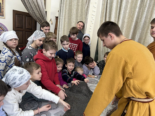 В Воскресной школе «Исток» храма Священномученика Ермогена в Зюзине прошло комплексное историческое занятие «Быт русского воина»