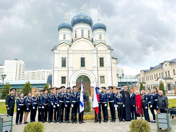 В храме святого праведного воина Феодора Ушакова в Южном Бутове состоялась церемония прощания выпускников морского кадетского класса ГБОУ «Школа № 1161» с кадетским знаменем