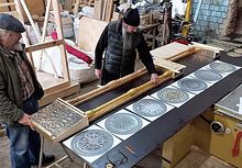 Настоятель храма священномученика Ермогена в Зюзине посетил производство по художественной резке камня для строящегося храма
