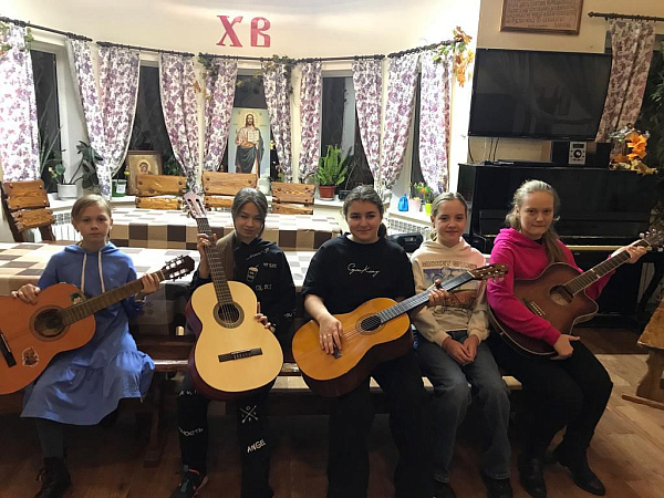 В Воскресной школе «Исток» храма священномученика Ермогена в Зюзине состоялось занятие для подростков "Знакомство с гитарой"