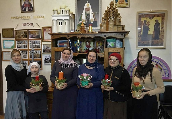 В Воскресной школе «Исток» храма священномученика Ермогена в Зюзине состоялся мастер-класс по изготовлению рождественской композиции