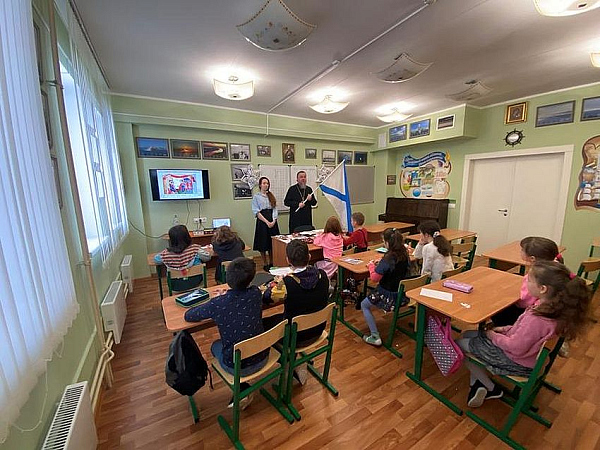В Воскресной школе храма праведного воина Феодора Ушакова в Южном Бутове состоялась беседа об Андреевском флаге
