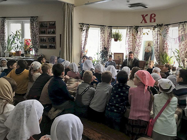 В Воскресной школе «Исток» храма священномученика Ермогена, Патриарха Московского и всея Руси, чудотворца, в Зюзине, состоялась беседа настоятеля храма с воспитанниками о Таинстве Причастия и подготовке к нему