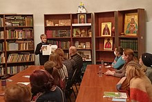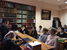 В рамках сотрудничества Воскресной школы имени А.В. Суворова храма Всех святых, в земле российской просиявших, в Черемушках и Гильдии Драматургов России прошла творческая встреча в Российской государственной библиотеке искусств