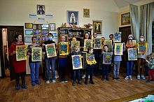 Учащиеся Воскресной школы храма Всех Святых, в земле Российской просиявших, в Черемушках приняли участие в конкурсе детского рисунка «Во имя мира на Земле»
