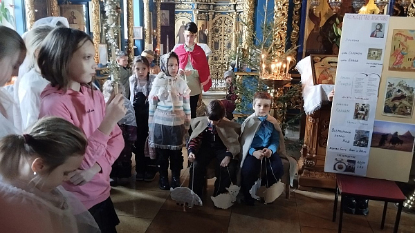 Воспитанники Воскресной школы при храме Иверской иконы Божией Матери в Беляеве поздравили прихожан с праздником Рождества Христова