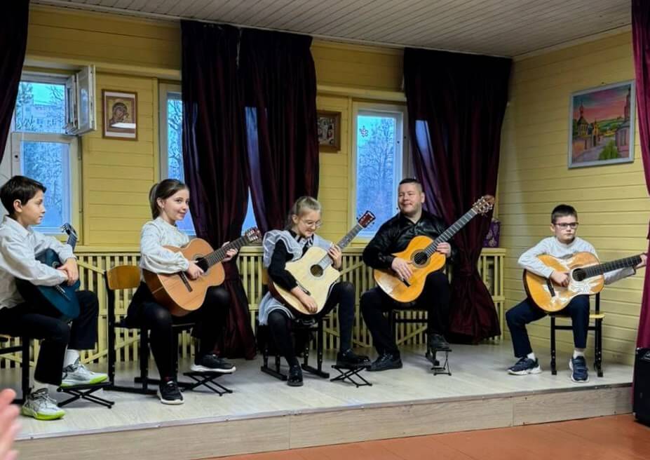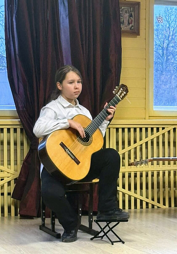 В праздничном концерте приняли участие ансамбль Студии гитары: Кочетков Захар, Солдатченкова Лиза, Ефимова Василиса, Семыкин Андрей (преподаватель Карпов В.В.); произведения на фортепиано исполнила Никонова Даша, Бурханова Тая, дуэт фортепиано и флейты прозвучал в исполнении Бурхановых Никиты и Таи; несколько пьес на гитаре исполнила Карпова Таня, стихи продекламировали Ефимова Василиса, Тинякова Арина и Сомина Саша; грациозно исполнила русский народный танец Варламова Варя.