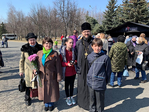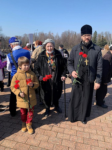 Настоятель храма иерей Илия Власов и ученики Воскресной учебно-воспитательной группы при храме святого пророка Божия Илии в Северном Бутове г.Москвы Полина Дронова, Алексеев Константин и Максим Мозоваткин, так же посетили памятное мероприятие, и смогли услышать рассказы присутствующих бывших узников фашизма, о тех страшных днях в своей жизни. На митинге так же присутствовала Алла Анисимовна Павлова 1934 г.р., которая с 1942-1944 годов была узницей фашистского концлагеря. Алла Анисимовна живет в Северном Бутове и является прихожанкой Ильинского храма.