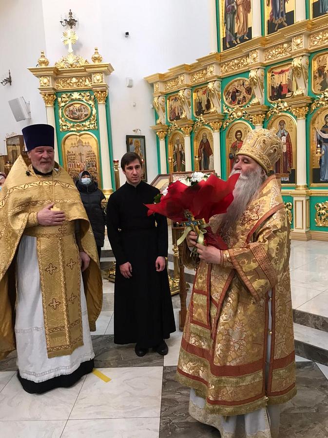 По окончании настоятель от имени прихода сердечно поблагодарил владыку Феофилакта за то, что он возглавил богослужение, испросил его архиерейского благословения и преподнес в дар букет цветов.
