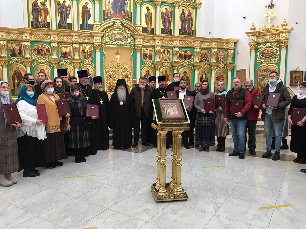 Владыка сердечно поздравил и поблагодарил всех добровольцев, трудившихся в разгар пандемии, и вместе с представителем правительства Москвы вручил благодарственные письма от мэра Москвы.