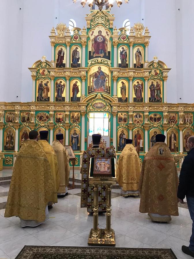 На сугубой ектеньи были возглашены молитвенные прошения об избавлении от коронавирусной инфекции. После сугубой ектеньи была вознесена молитва, читаемая во время распространения вредоносного поветрия.