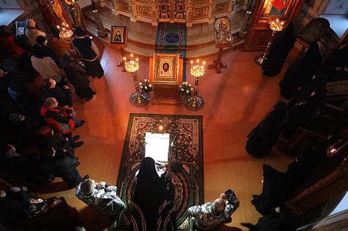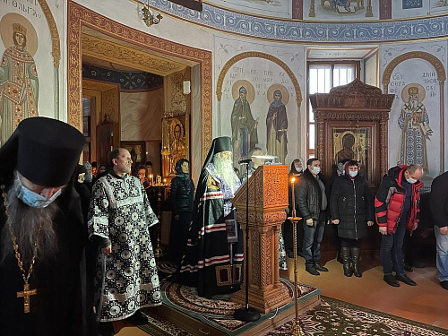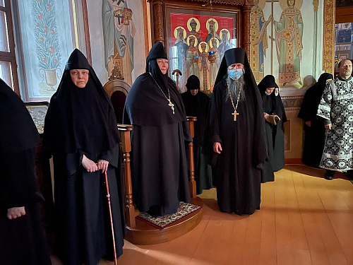 По окончании богослужения владыка Феофилакт обратился к игумении и сестрам со словом поддержки и назидания. Он поблагодарил сестер за труды и молитвы и пожелал благопоспешения Божия, как во дни Великого поста, так и во всей их монашеской жизни. Владыка подчеркнул, что на этом пути мы имеем множество образцов и благих примеров, посоветовав чаще обращаться к житиям святых: и преподобных, а особенно, и новомучеников. Весьма важно нам укрепляться примером их подвига, чтобы не дрогнуть во время испытаний.
