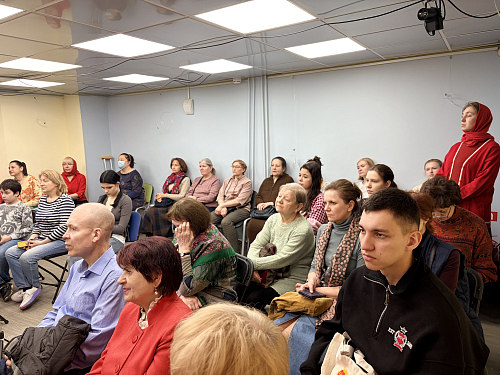 В этом году Пасхальный праздник собрал гостей самого разного возраста – от малышей до пожилых жителей района. Зал оказался особенно полон, создавая атмосферу настоящего семейного праздника. Среди зрителей собрались прихожане храма, воспитанники и педагоги Воскресной школы, постоянные читатели и сотрудники библиотеки.