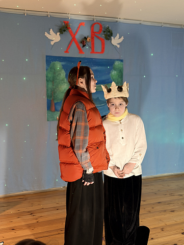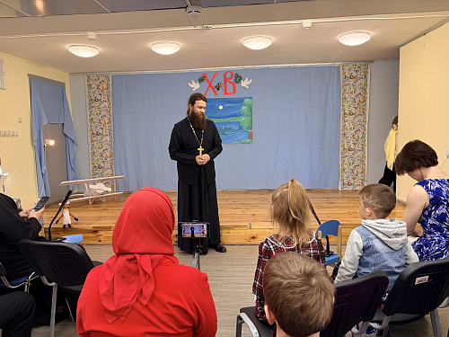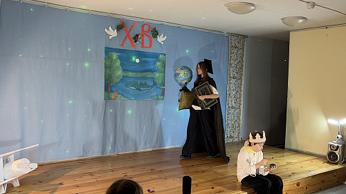 Ученики Воскресной школы под руководством режиссера Екатерины Шараповой подготовили для своих гостей сценку по мотивам рассказа «Маленький принц». Эта постановка рассказывает о дружбе, любви и поиске истины. А также напоминает своим зрителям о том, что «Зорко одно лишь сердце. Самого главного глазами не увидишь».