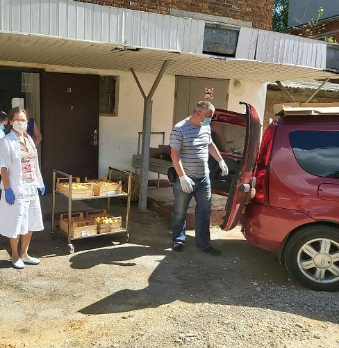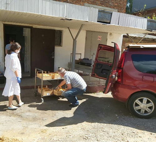 Добровольцы доставили угощения для всех 270 человек. Из-за карантина они не смогли пообщаться с бабушками и дедушками, но передали добрые пожелания от всех прихожан храма.
