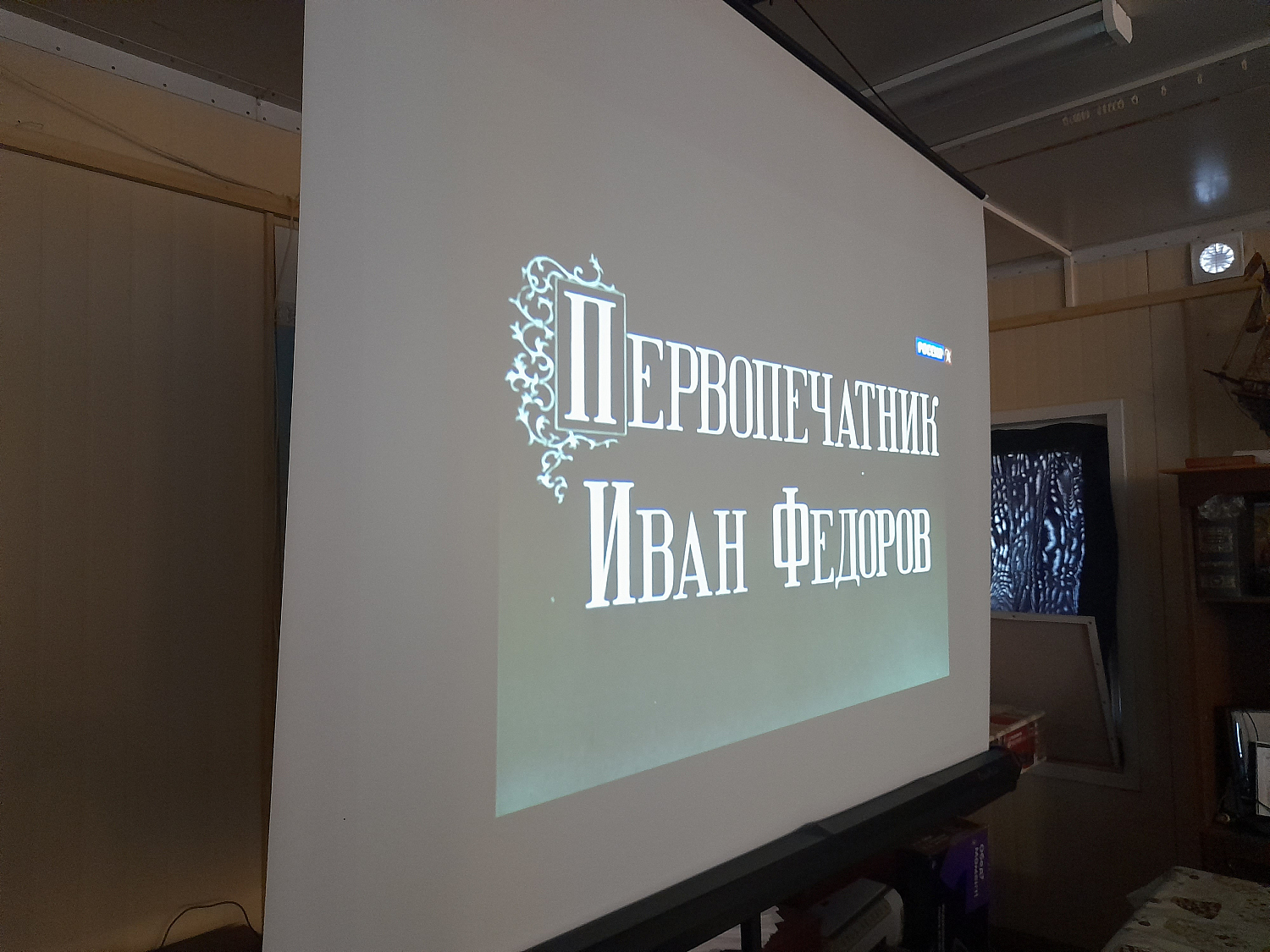 Ведущий начал с небольшого рассказа о начале официального книгопечатания в России и биографии русского первопечатника, диакона Ивана Фёдорова.