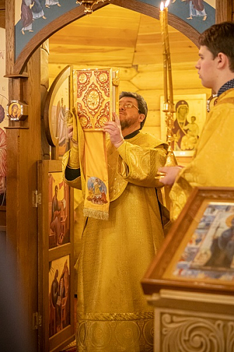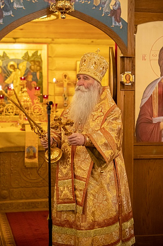 Епископ Дмитровский Феофилакт обратился к участникам богослужения с архипастырским словом, поблагодарил настоятеля за его усердные труды во благо Церкви и пожелал Божией помощи.