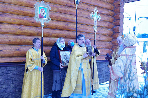 Владыко Феофилакт пожелал приходу успешного становления, духовного развития и помощи Божией в строительстве основного храма.