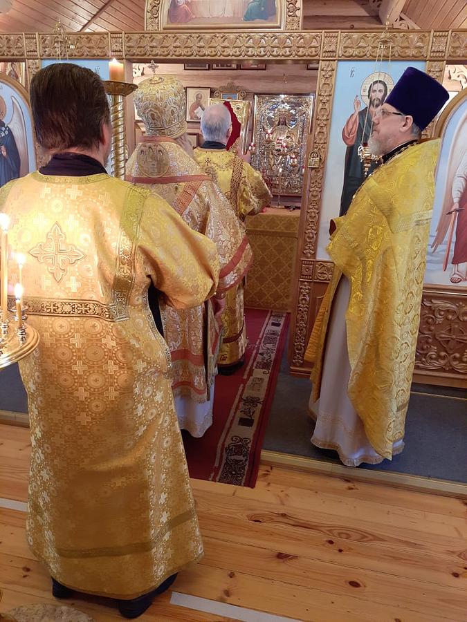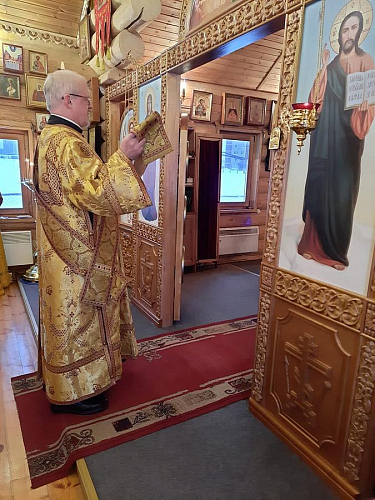 На Божественной Литургии владыке Феофилакту сослужили: настоятель храма Святителя Алексия иерей Виталий Никишин, протодиакон Николай Пянзин.