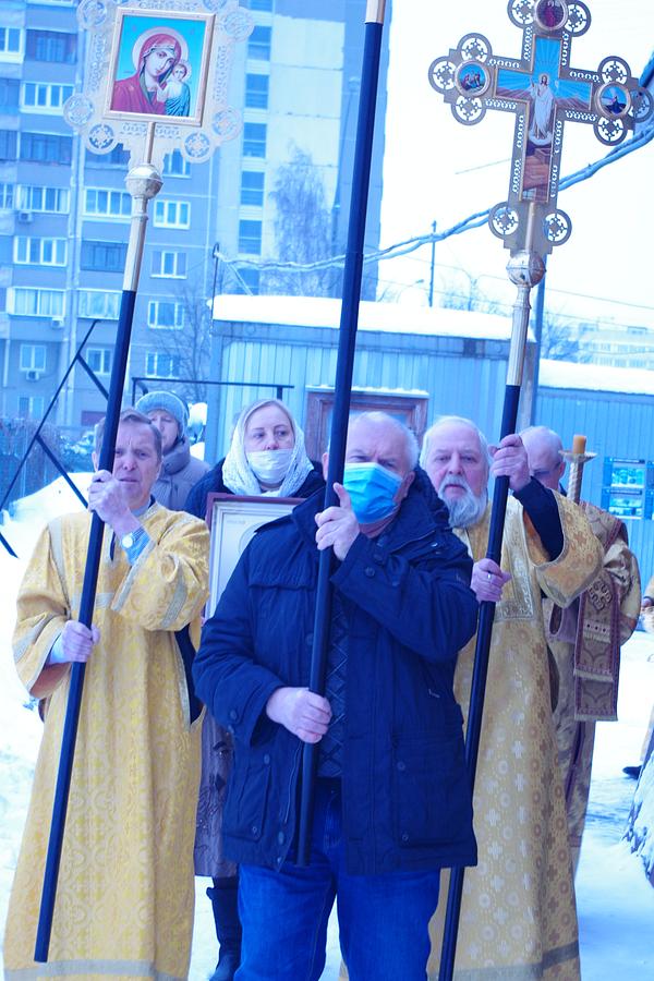 После Литургии был совершен праздничный молебен и Крестный ход вокруг временного храма.