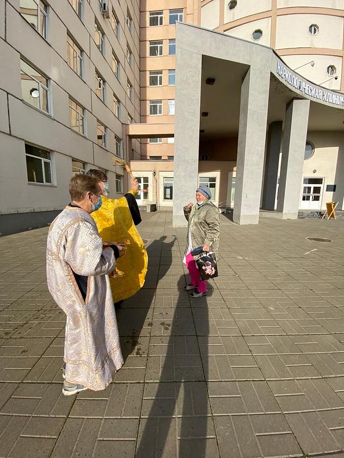 По просьбе главного врача медучреждения, Александра Ивановича Клячина, настоятель приписного храма «Неупиваемая Чаша» при наркологическом филиале №2, священник Виталий Никишин, совершил молебен о недужных. Также, настоятель окропил Святой водой территорию медстационара. Проведена миссионерская беседа с сотрудниками медствационара на тему: «О действии благодати Святаго Духа в исцелении больных COVID-19»