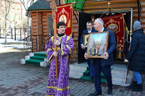 Настоятель храма, иерей Алексей Петухов, преподнес в дар Владыке написанную икону Священномученика Александра Орлова .
