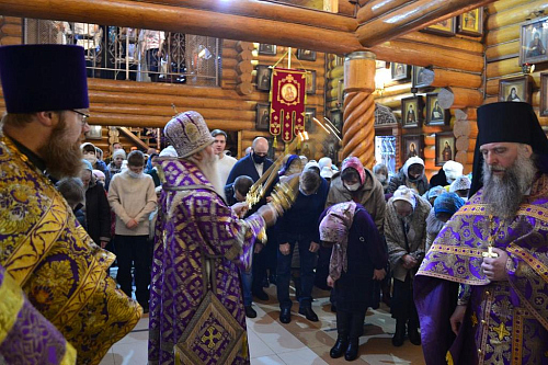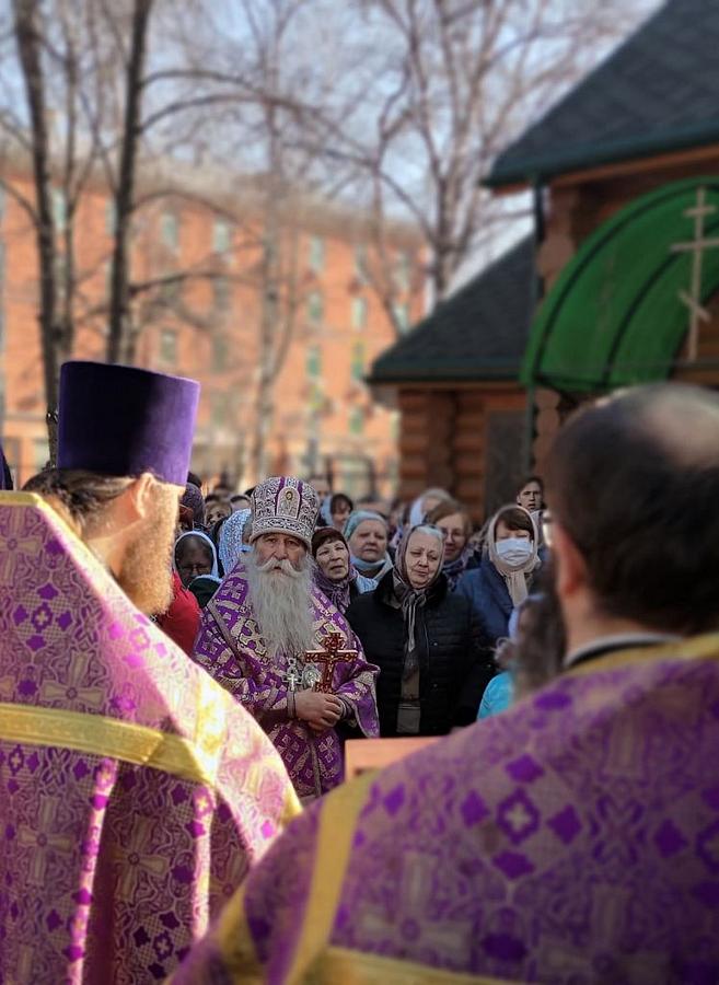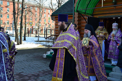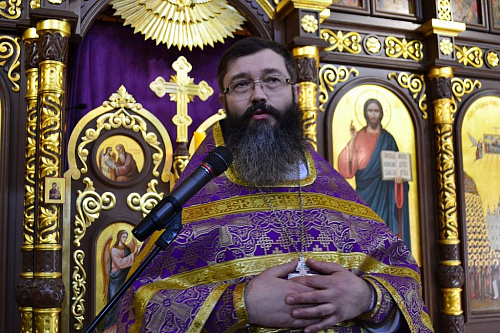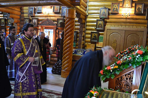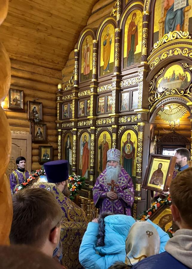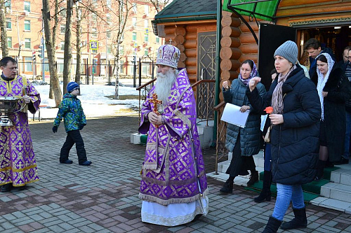 Преосвященному Владыке сослужили: иеромонах Феодор (Юлаев), клирик Московской Духовной Академии, иерей Алексей Петухов, настоятель храма Всех Преподобных Отцев Киево-Печерских в Старых Черемушках; клирик храма иерей Антоний Фукс, духовенство г. Москвы.