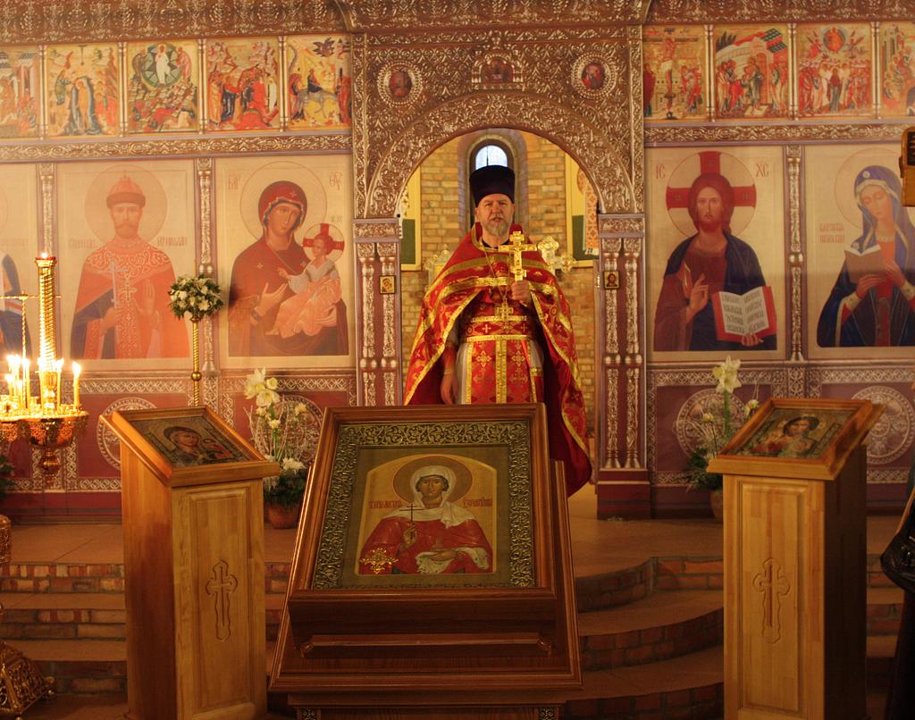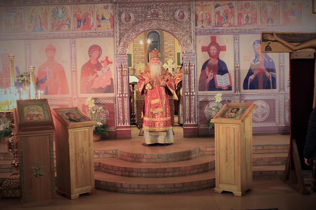 За Божественной Литургией владыке Феофилакту сослужили: благочинный Параскево-Пятницкого благочиния протоиерей Анатолий Кожа, настоятель храма Святой великомученицы Анастасии Узорешительницы протоиерей Александр Ковтун и клирики храма. Хор возглавила регент храма Елена Михайловна Сидорычева.