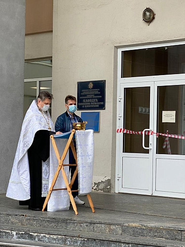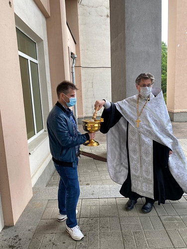 По просьбе главного врача медучреждения, Александра Ивановича Клячина, настоятель приписного храма «Неупиваемая Чаша» при наркологическом филиале №2, священник Виталий Никишин, совершил молебен о недужных. Также, настоятель окропил Святой водой территорию медстационара.