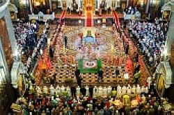 Святейший Патриарх Кирилл возглавил встречу Феодоровской иконы Божией Матери и совершил Литургию перед чудотворным образом в Храме Христа Спасителя в Москве