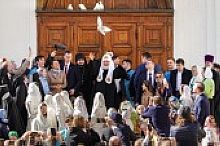 Святейший Патриарх Московский и всея Руси Кирилл совершил Божественную Литургию, в которой в качестве молящихся и поющих, служащих и прислуживающих в алтаре участвовали дети отроческого возраста