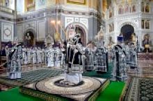 В праздник Входа Господня в Иерусалим Предстоятель Русской Церкви совершил Литургию в Храме Христа Спасителя