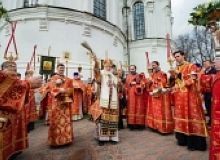 В понедельник Светлой седмицы Святейший Патриарх Кирилл совершил Литургию в Успенском соборе Московского Кремля
