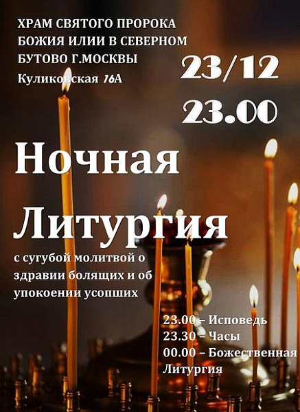 В Ильинском храме в Северном бутово совершена ночная Божественная Литургия