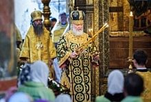 В день памяти святителя Петра Московского Святейший Патриарх Кирилл совершил Литургию в Успенском соборе Московского Кремля