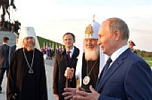 Президент России В.В. Путин и Святейший Патриарх Кирилл приняли участие в открытии мемориального комплекса «Князь Александр Невский с дружиной» на берегу Чудского озера